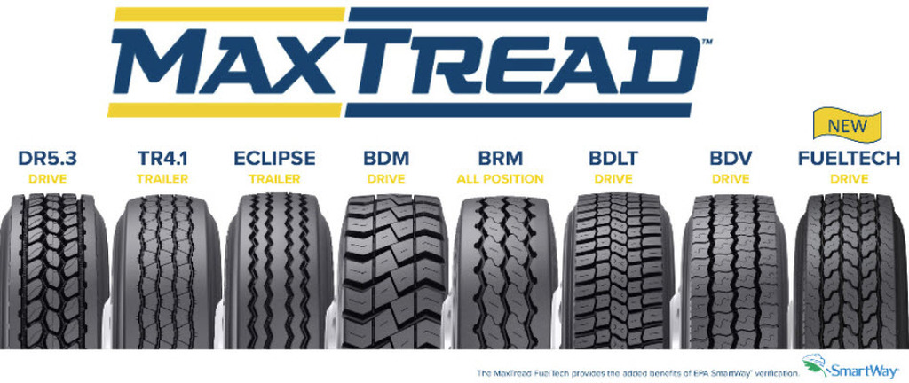 Линейка Bandag MaxTread, представленная ранее в этом году, включает следующие продукты: BDM, BDLT, DR5.3, DR4.3 и FuelTech Drive для ведущей оси; TR4.1 и Eclipse SST для прицепов; универсальные протекторы BRM.